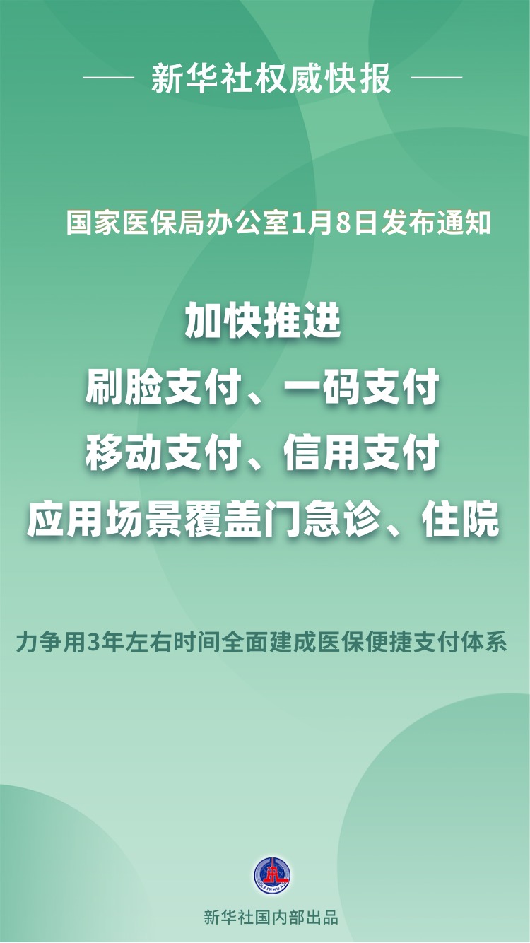 聚焦群众看病缴费“多次排队”“排长队”等堵点痛点,国家医保局办公室1月8日发布《关于大力推进刷脸支付、缴费捷支建成一码支付、不用保便移动支付、等医信用支付等便捷支付工作的付体通知》,明确加快推进刷脸支付、系力一码支付、争年左右移动支付、看病信用支付在各类医疗场景落地,缴费捷支建成力争用3年左右时间全面建成医保便捷支付体系。不用保便